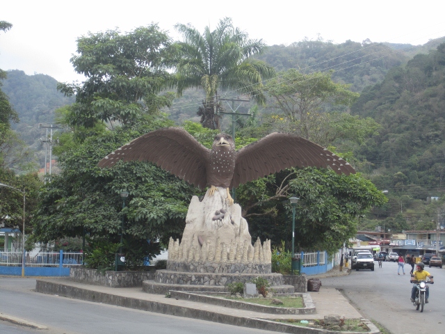 Our first destination in the north was the Caripe valley and its few remnant patches of forest on the adjacent hills which support several very restricted-range endemics, such as Grey-headed Warbler. One of the birding attractions is a very accessible cave that supports a population of Oilbirds, one of the species we talked about in our Roraima posting. The area is relatively touristy and they have chosen to highlight the attraction with a giant Oilbird statue at a prominent road junction.