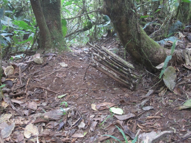 Above is a view of the Caripe valley and surrounding slopes from the trailhead at a “new” site we found where we had great luck finding our target birds. In addition to the continuing loss of forest cover that threatens these species we found very real evidence of active bird trapping when we stumbled upon a number of traps (below). These are designed to capture ground-dwelling birds, such as the Lined Quail-Doves we found in two of them. We were well aware that making a living and finding food is difficult in rural Venezuela and we were reluctant to interfere, but it was impossible for us to walk past trapped wild birds, so we released them.