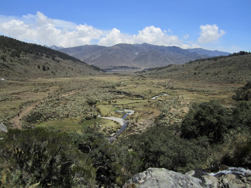 The view back down to base camp (slightly left of and below center) from a mirador about a third of the way up the trail.