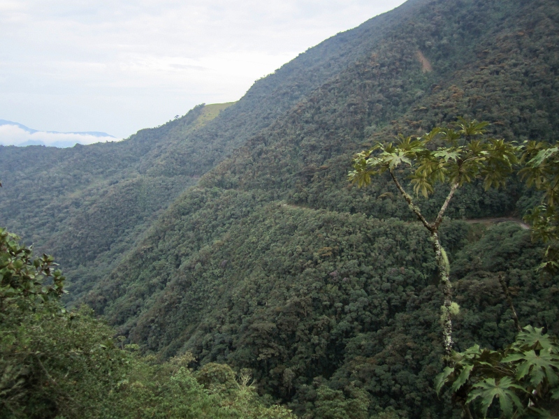 Cueva de los Guacharos ("Oilbird Cave"). This spectacular slot canyon - only a few metres wide but plunging hundreds of metres deep - houses arguably the most impressive Oilbird cave in the World. Oilbirds are large nocturnal birds of northen South America related to the nightjars, found by day roosting and nesting in caves. What makes this cave so unusual is that the sunlight penetrates the cave, giving superb views of the Oilbirds in the middle of the day. (We had previously seen the species in Colombia and Trinidad, but it is not the same seeing them - and somewhat disturbing them - by torchlight inside a dark cave.) We saw hundreds in Cueva de los Guacharos, but there may be several thousand, as no-one knows the depth of the canyon, and the birds continue on the "shelves" as far as the eye can see (as you hang precariously over the edge) down into the depths.