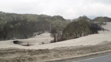 Appearing to be a snowy winter scene, this is a picture of the deposit - several feet deep in places - of ash and pumice left over from the recent Puyehue volcanic eruption.