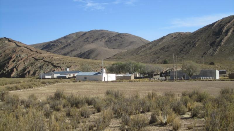 All ten buildings of the village of Lagunillas. We camped in the lee of the wall at the far right edge of the photo. The only people we found were in the school building at the far left end. Every pueblo in Argentina, no matter how small or basic, has a full size soccer pitch (the cleared area in the foreground).
