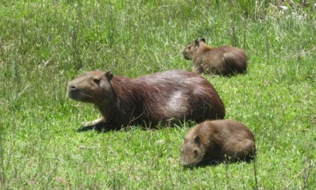 We had both long wanted to see capybaras, and Ibera did not disappoint for these. We saw numerous individuals and small groups, including lots of young ones, wallowing in mud pits near the roadside. The capybara is the largest living rodent in the world. Its common name, derived from Kapiÿva in the indigenous Guarani language, means "master of the grasses". They reminded Jon somewhat of small furry hippos, with nostrils, eyes and ears all at the top of the head. Despite all of the amazing birds we’ve seen on our travels, for Anne this was a highlight of the trip so far.