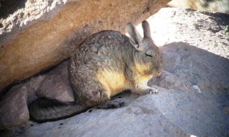A vizcacha dozing in the shade. These rodents are most closely related to chinchillas, but look like a somewhat odd cross between a rabbit and a giant ground squirrel.
