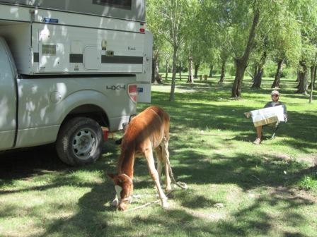 We spent an interesting Christmas on the shore of the Rio de la Plata, just east of Buenos Aires, at a relaxing camping area that just happened to have ensuite Red-and-white Crakes. This is the time of year when Argentines flock to the beaches, and they showed up in force Christmas morning. Fortunately, it was not too chaotic and we very much enjoyed observing how the locals spend the holiday. Our next door neighbors were two local families that came down to set up stalls selling everything you might want at the beach, such as inflatable rafts, sunglasses, hats, and wine. Most amusing was that they brought their orphaned foal with them, which grazed freely about the area, including between Jon (dutifully studying a Brasil map) and our truck.
