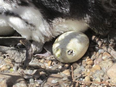 Small chicks were present in some of the nests and we were especially fortunate to find this one just starting to peck its way out of the egg (its little bill is just visible in the hole).