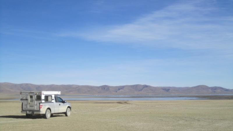As dusk was setting in, we looked for a place to camp, and the only realistic option was on the leeside of the largest building in the tiny, remote, dusty mountain pueblo of Lagunillas, between the coot and main lakes. At first the village appeared to be deserted, but then a few young boys emerged and watched us from afar. As we usually do on the infrequent occasions that we camp in or near villages, Jon wandered over to try to seek permission to park for the night (no-one has ever said no in such situations anywhere in Latin America, but we always try to ask).