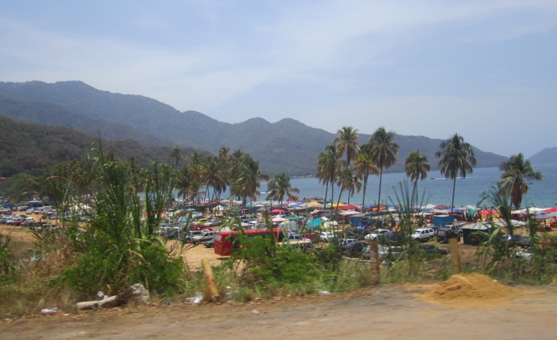 We always do our best to avoid areas where people amass during holidays, but nonetheless we found ourselves traveling toward Caracas on the final weekend of Semana Santa (Easter Week), probably the most popular Latin American holiday of all. Venezuela is clearly not a markedly religious country, and Easter seems to be all about the beach. The traffic was incredible even hours away from Caracas, apparently because the entire city vacates to the northeastern beaches for the week. The photo above shows one of the many jam-packed beaches we passed on this beautiful coast.