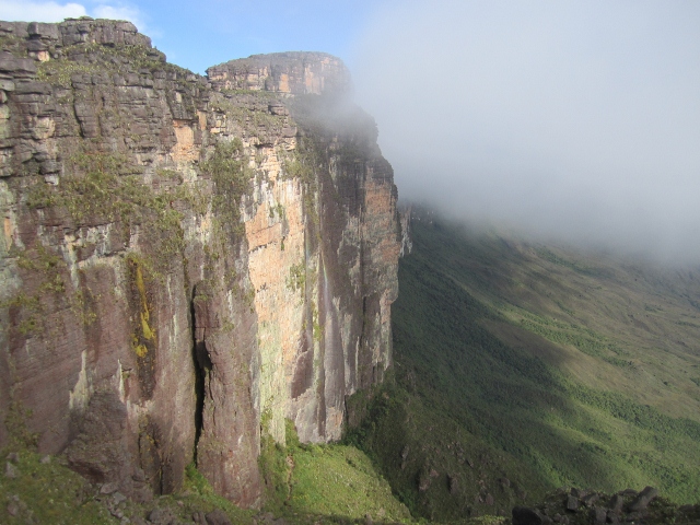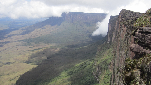 If you are lucky, as we were, and have fine weather, the views are spectacular in every direction. You frequently have the sensation that you are looking down from an aeroplane window! Above, the south face of Roraima-tepui, with La Gran Sabana stretching away into the distance. Below, the dawn view from our “hotel”, with Kukenan-tepui in the distance.