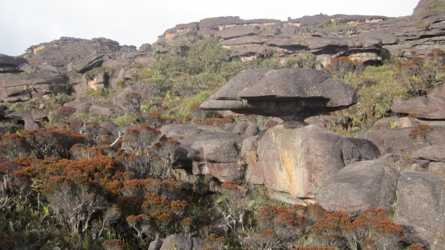The unique geology on top of the tepuis was the inspiration for Arthur Conan Doyle’s The Lost World. In the extreme environment, with exceptional solar radiation and wildly swinging temperatures, almost every plant and animal is unique to the tepuis, and many organisms are even unique to individual mountain tops (but rarely the much more mobile birds).
