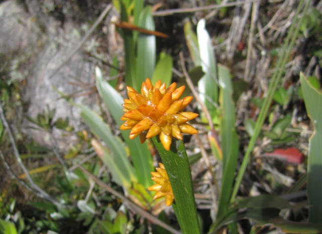 The flora of the tepuis is remarkable. Above, an Ultricularia, colloquially known as a pitcher plant. This carnivorous plant is endemic to the tepuis, and gets nutrition from digesting insects trapped in the liquid in its leaf roll (its flower is the pink one just visible on the long stem to the left). Many tepui plants are carnivorous, believed to be yet another exceptional adaptation to an extreme environment. Below, Stegolepis guianensis. This genus is endemic to the tepuis, and is a member of the Rapataceae family found in Africa, further demonstrating the ancient link that the tepui represent between the once-connected continents of South America and Africa.