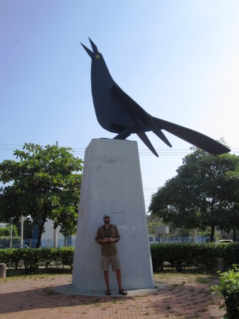 For reasons that were completely unclear, in Cartagena (on the Caribbean coast, where we waited for our vehicle to arrive by ship) there is a small park with a huge statue of Great-tailed Grackle in the middle. This species seemed a rather odd one to commemerate, being neither rare nor special to Colombia. But there were lots of them in the city. Hopefully they appreciated their statue.