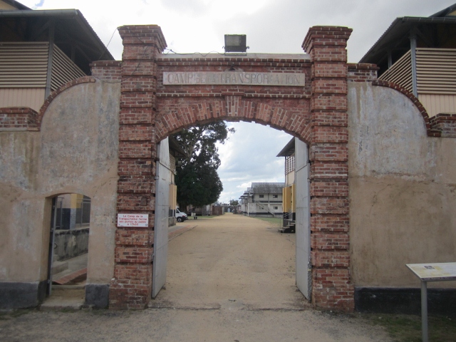 Many people only know of French Guiana (Guyane) as the setting for the famous book and movie Papillon. This overseas French departement’s function as a penal colony is certainly its most significant role in history. In a move similar to the British approach to Australia, in 1850 Napolean Bonaparte announced the foundation of a penal colony in Guyane and his intention to “make hard labour more effective, less moralistic, less expensive, and above all more humane by using it to develop French colonies.” The first convicts arrived on the offshore islands of Iles de Salut two years later. The islands continued to host convicts, but within a few years, it was clear that more extensive facilities were needed and in 1858 Saint-Laurent du Maroni was inaugurated as the first city devoted to “transportation”. The photo above shows the entrance gate to the Camp de la Transportation where the convicts were housed.