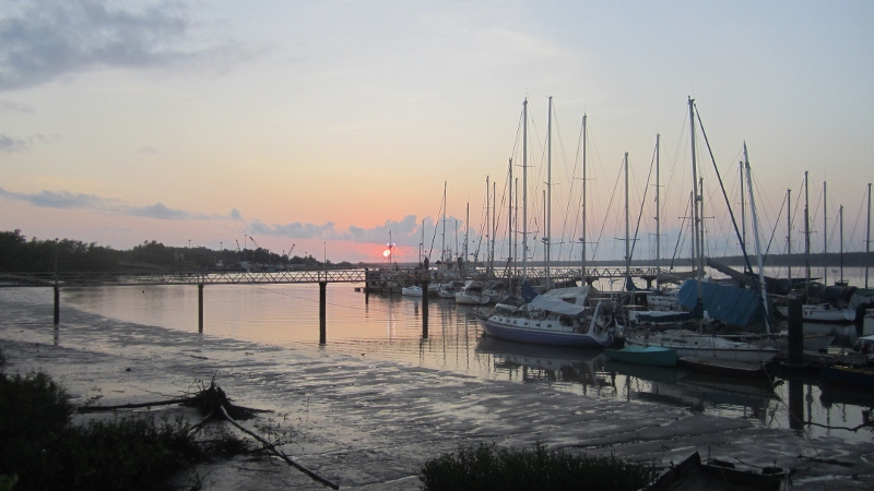 The winding road from the marina to the mouth of the river and along the coast to the outskirts of Cayenne - the Rue des Plages - is very scenic. This is the view from one of our favorite spots to stop and enjoy the shade on our way into town. The only drawback of the Guyane seafront is that the water along the shoreline is heavily laden with sediment and very unappealing for swimming, but it’s still a nice place to relax.