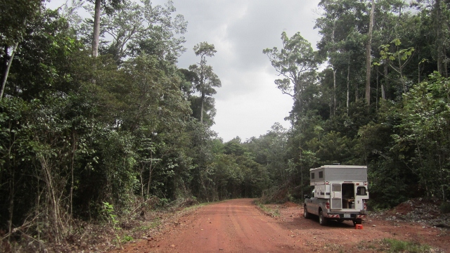 This time through we only stopped In Georgetown briefly one night, and quickly got onto the Lethem road, which traverses most of the length of Guyana. For long sections on either side of the Essequibo River it is a single track through lovely forest. On the northern section of the track (east of the river) it goes through a vast logging concession, which ironically has probably kept more of the forest in good condition than many of the alternative uses. Southward (west of the river) there is a large reserve preserving much of the forest.