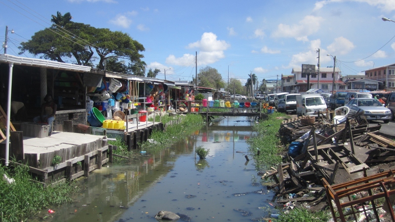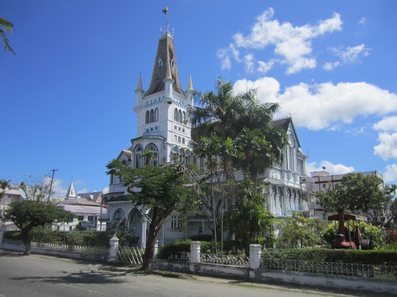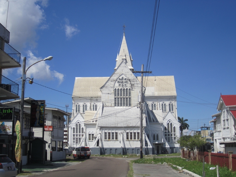 Unfortunately, our most lasting impression of Georgetown may be the unbelievable amount of rubbish and debris. The city was built at the mouth of a large river (13 feet below sea level) and continues to be “drained” by a canal system constructed by the Dutch, prior to Guyana becoming a British colony in the late 1700s. As a result, every street is bordered by an open water-filled ditch, most of which were completely clogged with plastic bottles, Styrofoam containers, and other discarded items, and had the characteristic odour of sewage. The picture above is of one of the less fetid canals but gives a general impression of the atmosphere. Although we were a bit dismayed by the apparently poor state of the city, we found Georgetown very interesting and were glad to have had an opportunity to spend some time there.