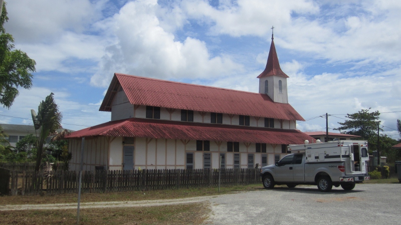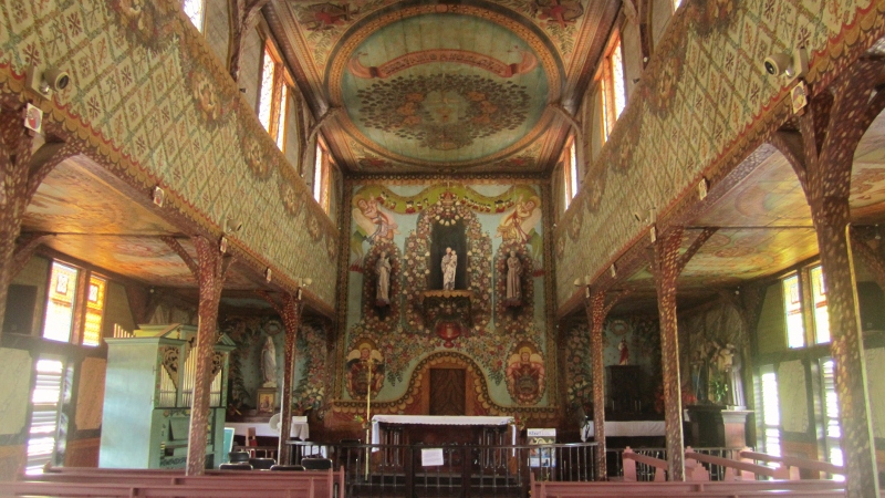 On one of our passages between Cayenne and western Guyane we stopped to see the church in Iracoubo. It is not an impressive structure from the outside (above) but is truly spectacular on the inside (below). The simple wooden interior was painted entirely by hand by a convict named Huguet in the 1890s.