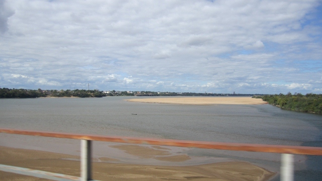 After more than five months, we finally left the three Guianas, and crossed back into Brasil. Here we pass over the Rio Branco, a tributary of the Amazon, with the city of Boa Vista on its bank. After months in much smaller places, a moderate-sized Brasilian city was a bit of a shock to the system, but we enjoyed the frontier feel of the place.
