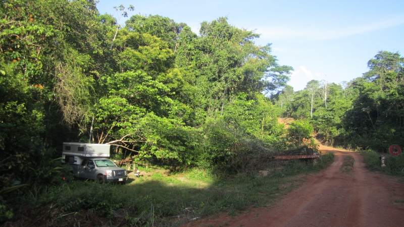 There are no campgrounds and no truck stops in all of Guyane, so we were unsure how easy it would be for us to find good places to park for the night, particularly near Cayenne. Fortunately we had learned from other overlanders that it is possible to stay at a marina on the river about 15 kilometers south-east of the city. This proved to be an interesting spot with lots of activity (and surprisingly good birding). There are about twenty boats onsite, some unoccupied but most lived in full-time by residents or travelling boaters. Most folks are just passing through but they seem to stop here for long periods. The French may take the opportunity to get a job for a while, others have work done on their boats, and some just rest up before moving on. It is certainly an eclectic bunch. The attraction (for them and us) is that no one seems to mind if you stay and use the seemingly free facilities. So, the marina has become a bit of a home for us and we’ve spent many of our nights in Guyane parked there. Noteworthy birds that we have seen regularly here include Rufous Crab Hawk, Rufous-necked Wood Rail, and Wing-barred Seedeater. Above is the view from our “bedroom” window at sunrise.