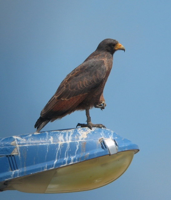 One of the commonest birds at the marina is Rufous Crab Hawk, which is nearly endemic to the coastal fringe of the Guianas. Every day we were able to watch at least one individual hunting on the receding tide. It would watch for crabs from its favoured lamppost perch and drop to the exposed mud when an unsuspecting crab ventured far enough from cover. Note its disproportionately thick legs and feet for handling feisty crabs.