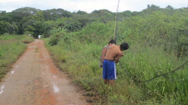 While birding near Awala-Yalimapo in the extreme northwest corner of Guyane we came upon two Amerindian boys trapping finches with a mist net. This is obviously not something we like to see, but economic opportunities for the indigenous peoples of the Guianas are limited. It is very popular for men of various ethnic backgrounds in the towns and cities of the Guianas to have a finch and carry it everywhere with them in a small cage, so catching and selling finches can be a good source of income. Most of the captive birds we have seen are of relatively common species, but it is not unusual to see Large-billed and Great-billed seedfinches, the latter of which is sadly very rare and difficult to find in the wild now.