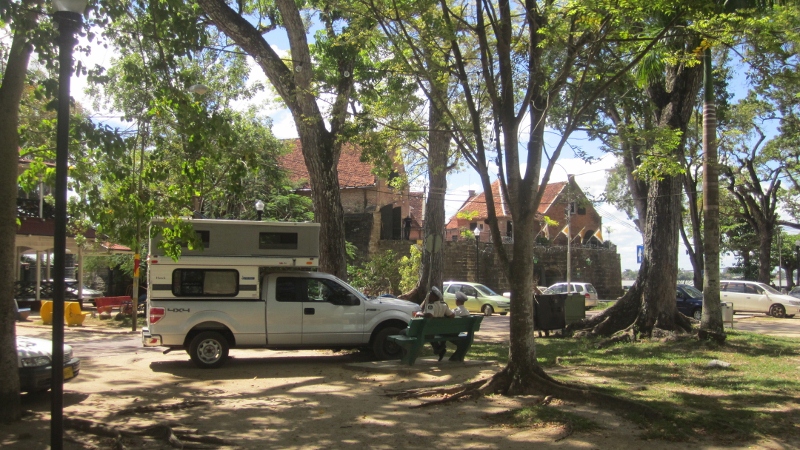 After taking a ferry across the border river to Suriname, we headed straight to the capital, Paramaribo, and were very happy to find a good base camp at Fort Zeelandia (above), right on the riverfront and adjacent to the town center. Despite its urban setting, there were plenty of lovely shade trees, it was quiet overnight, and we always felt very secure as it was right next to the president’s office with 24-hour military security. In the photo there are two policemen sitting on “our” bench admiring the truck! The fort site has a long and varied history of foreign use, which started with construction of a Dutch trading post in 1612. Though actively used as a fort at various times by the French and British, the site was not an effective military defence and was sacked repeatedly. As with so many parts of this coast, Suriname changed hands between the Dutch, British and French several times during the course of the 17th Century. Between 1650 and 1667 it was a British colony named “Surreyham”, Surrey being a county in southern England (the one in which Jon grew up, oddly enough), which was corrupted to the name Suriname. It is hard to imagine a more tangential way for a country to get a (thoroughly inappropriate) name.