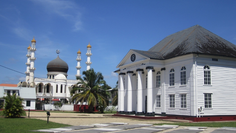 Aside from its excellent wildlife watching, the quality of Suriname that we enjoyed most was its remarkable ethnic and religious diversity, especially for such a small country (with a population of about half-a-million people). Although the country has had its share of tensions between groups, based on our discussions with residents, reading, and own observations, they seem to coexist as well as in any country we know. This is perhaps best symbolized by the above image. The country’s principal synagogue and mosque, each an impressive building in its own right, are next door to one another in downtown Paramaribo.