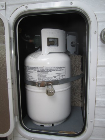 Two 4.5 kg (10 lb) propane tanks. Many overland vehicles have only a single propane tank, so when they run out they have to fill up as soon as possible. With two tanks, it is never an emergency to fill up, you can always have one full, and can fill up in your own time (and at the easiest, cheapest places). We have found that even with daily use one tank last about two months. (In Argentina we added a propane bottle adapter, essential for filling up in Argentina, Chile, Uruguay, and French Guiana.)